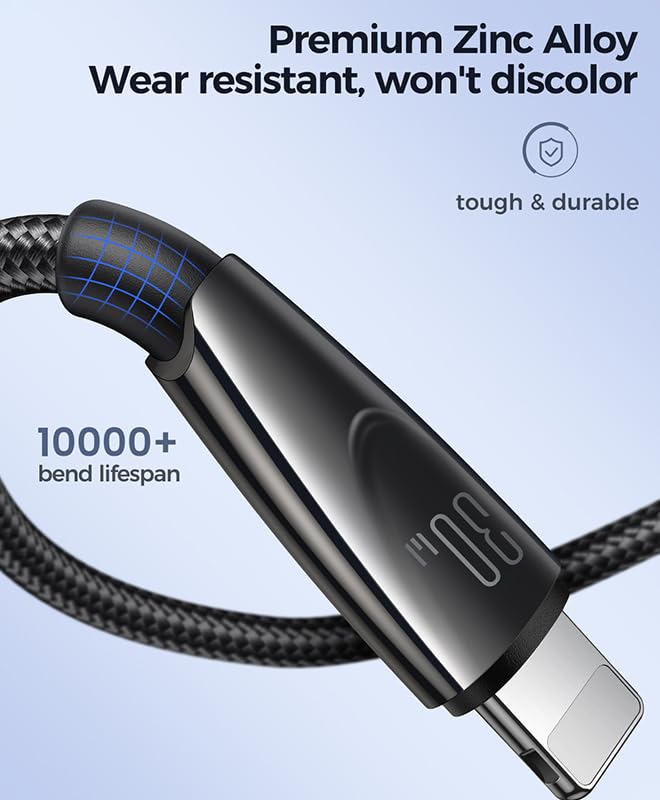 - 30 وات، شحن سريع: كابل من نوع سي إلى لايتنينج يوفر شحنًا سريعًا بقدرة 30 وات ويوفر شحنًا فعالًا وسريعًا للعديد من أجهزة آبل. يضمن مخرج التيار العالي تعزيزًا سريعًا وفعالًا للطاقة لأجهزة ايفون وايباد وايبود.