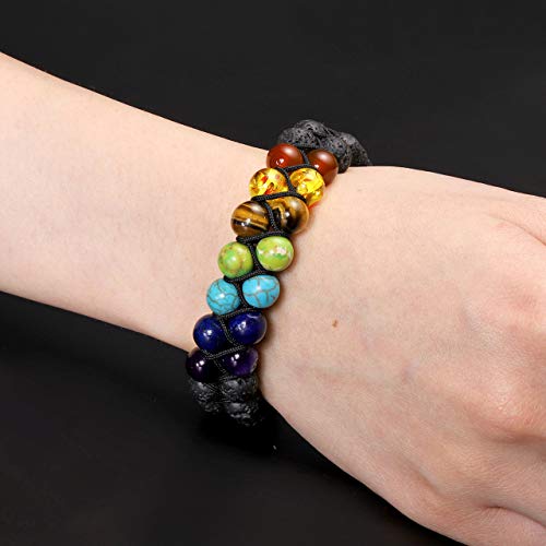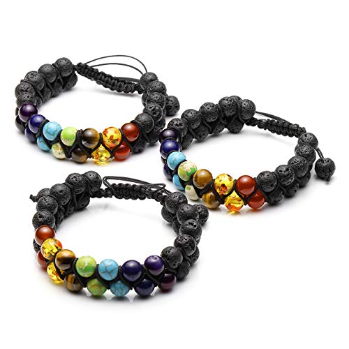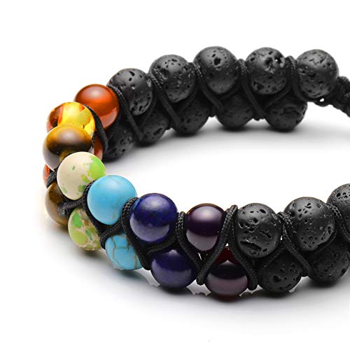 JSDDE - سوار خرز من الاحجار الكريمة والاحجار العلاجية والكريستال مع حجر اللافا البركاني موزعة بشكل ضفيرة على صفين من جيه اس دي دي اي