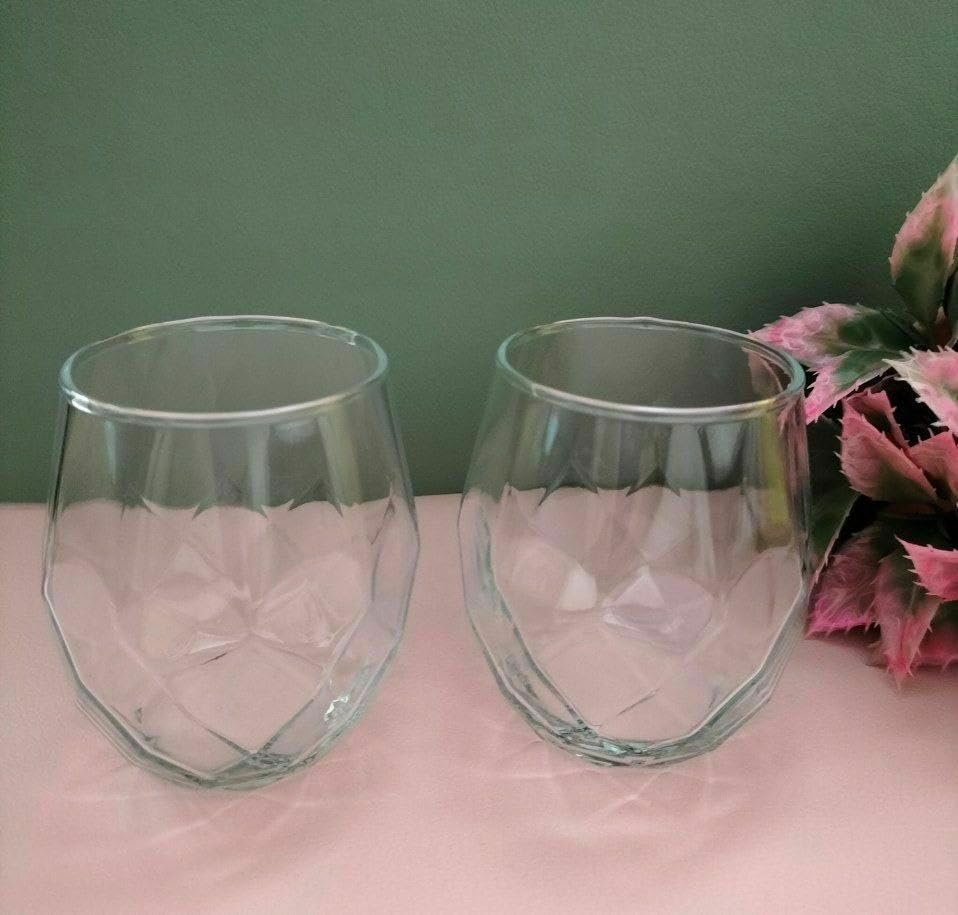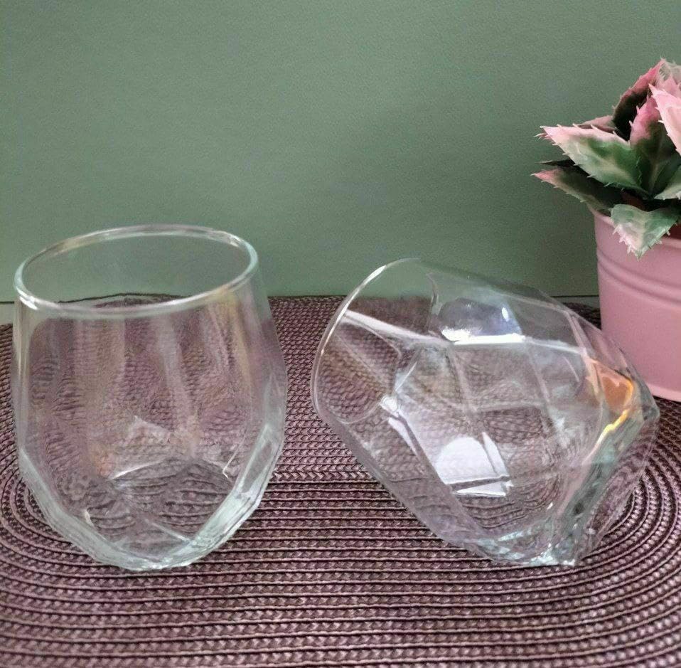 - تصميم أنيق: تتميز أكواب العصير من ازمير بتصميم متطور بدون جذوع مع نمط زخرفي ذو أوجه يضيف لمسة من الأناقة إلى أي طاولة