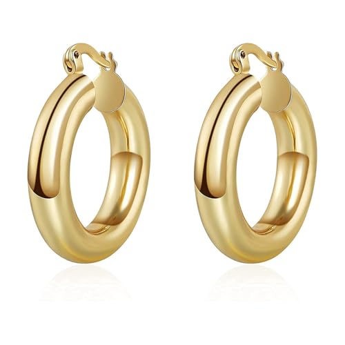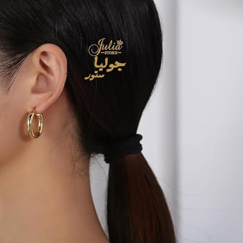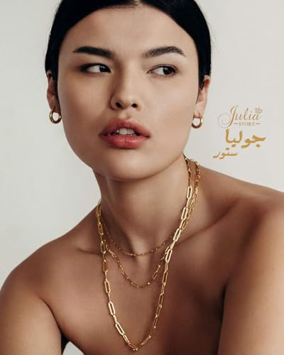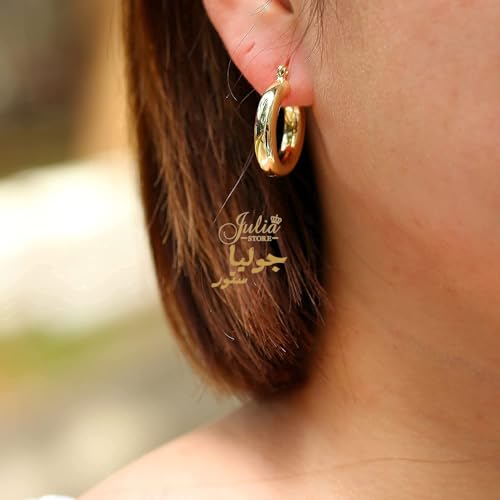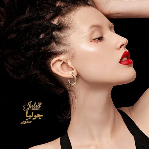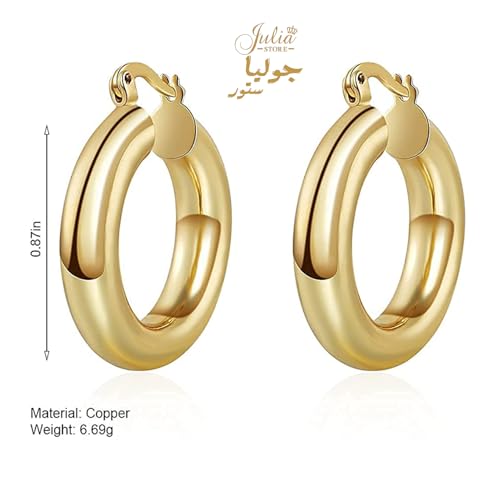 Julia Store - اقراط مطلية بالذهب عيار 18 قيراط للنساء حلقية مكتنزة عصرية بتصميم هندسي مجوف متدلية طويلة بحلقات ذهبية من جوليا ستور