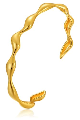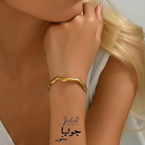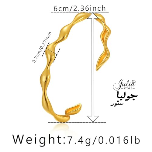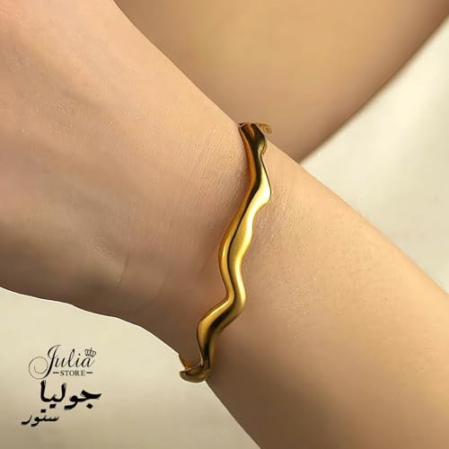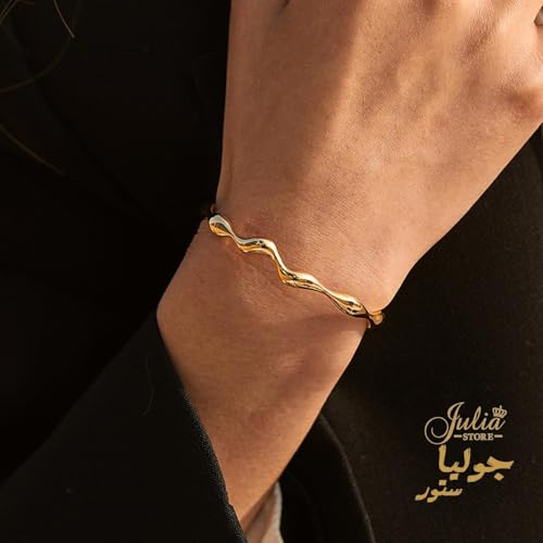 Julia Store - سوار معصم من الستانلس ستيل المطلي بالذهب عيار 18 قيراط بتصميم عصري غير منتظم الشكل قابل للتعديل من جوليا ستور