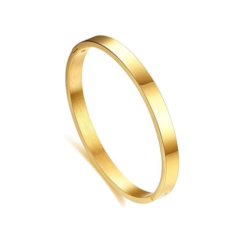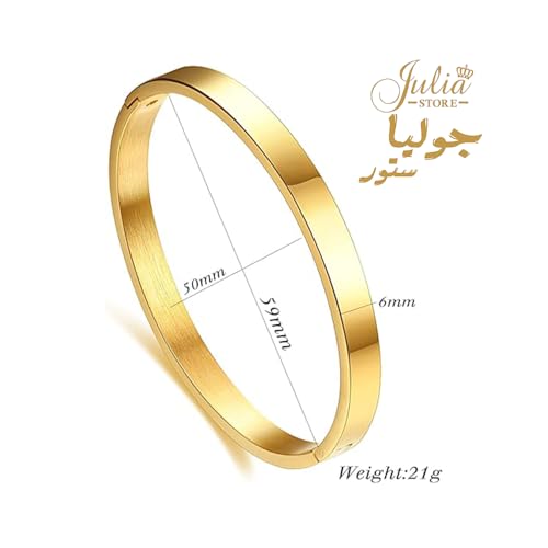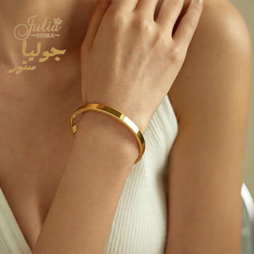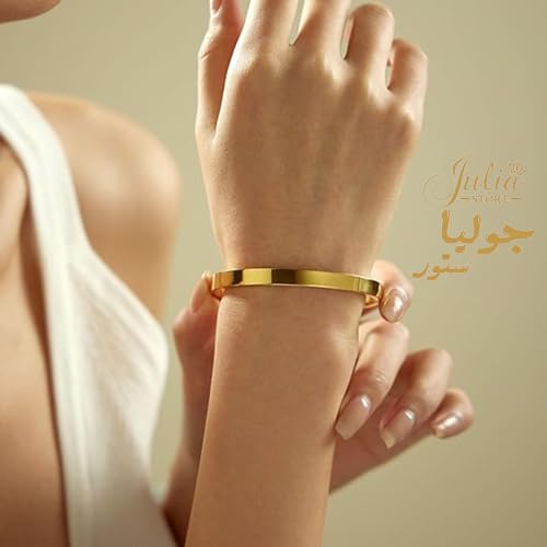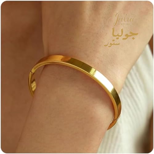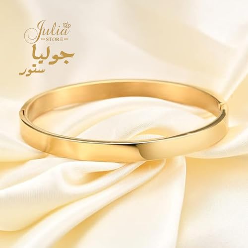 Julia Store - اساور حلقية مطلية بالذهب عيار 18 قيراط للنساء من جوليا ستور، اساور حلقية بيضاوية مفصلية قابلة للتكديس من الستانلس ستيل مقاس 6.5-7.5 انش