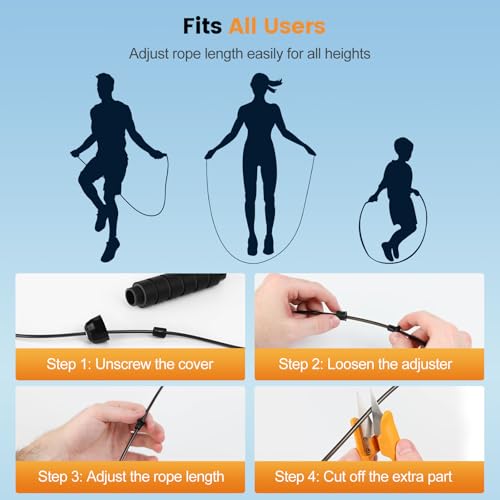 SKIFUL - حبل قفز سريع غير متشابك مزوّد بمحامل كروية للرجال والنساء والأطفال، حبل قفز صلب قابل للتعديل بمقابض فوم مريحة، معدّات واكسسوارات للتمارين واللياقة البدنية