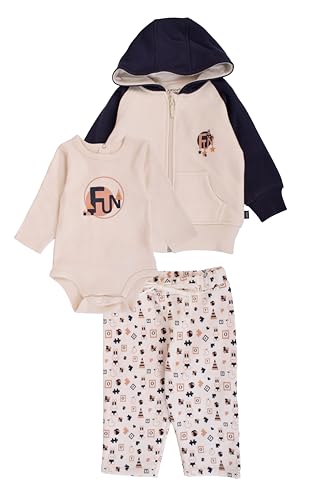 junior - طقم أولاد بيبي من جونيور مكون من 3 قطع: هودي بسحاب كامل وسالوبت بأكمام طويلة وبنطلون مطبوع (هودي، سالوبت، بنطلون) (عبوة من 3 قطع)