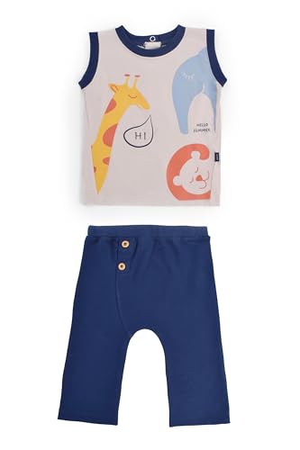 junior - طقم بيجامة للأولاد البيبي من جونيور مكون من تيشرت بدون أكمام وبنطلون مطبوع