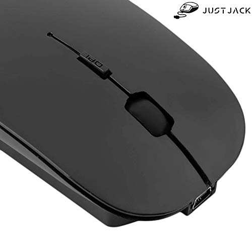 Justjack - ماوس لاسلكي صامت بمنفذ USB قابل لاعادة الشحن من جاستجاك متوافق مع ماك بوك وماك وابل والكمبيوتر واللاب توب ماجيك برو