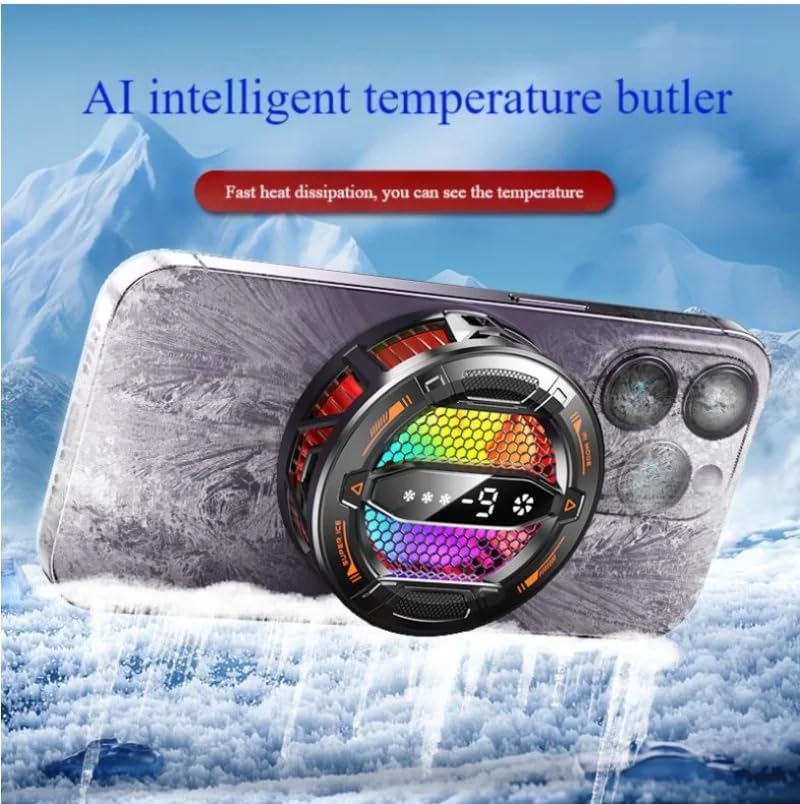 Next store - K31 مبرد هاتف مروحة تبريد من Next store بأشباه الموصلات مع شاشة عرض حرارة رقمية ورادياتير RGB ومشبك مزدوج متوافق مع ماج سيف لـ آيفون 15 14 13 برو ماكس آيباد سامسونج S24