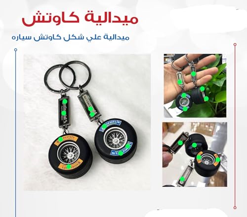 Generic - ميدالية وسلسلة مفاتيح بشكل كاوتش ، مناسبة لمفاتيح السيارة والدراجات النارية ومفاتيح المنزل والمكتب ، اطار سيارة - جود اصفر - مطاط ، (قطعة واحدة ) اسود - من كابر مصر 2020