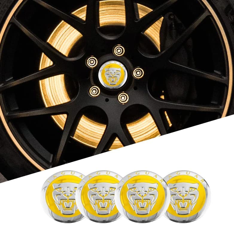 Generic - مجموعة ستيكر لاصق لتزيين محور عجلات سيارات جاكوار بتصميم ثلاثي الابعاد مكونة من 4 قطع من كابر تريد، اصفر