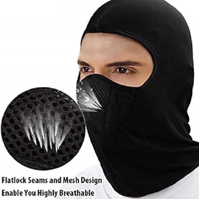 Generic - قناع وجه لراكبي الدراجات النارية ارتداء القناع تحت الخوذة مقاوم للغبار والاشعة والتراب والرياح جيد التهوية لكامل الوجة والرقبة(قطعة واحدة ، فلتر شبكى لون اسود ، كود: 8823) - من كابرمصر 2020