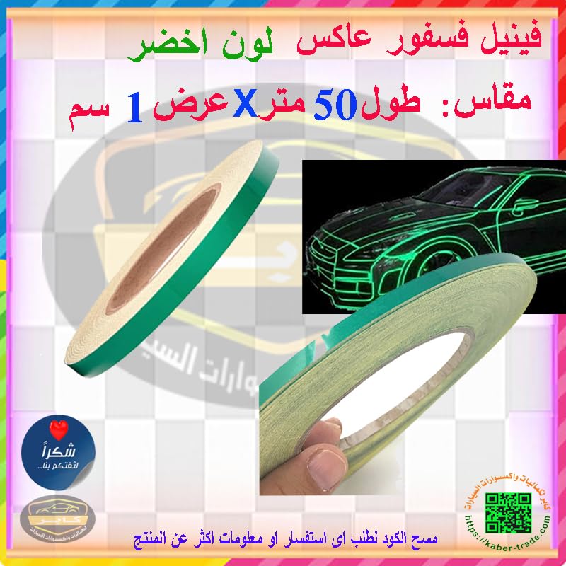 Generic - شريط تحذير للسلامة عاكس للضوء علامات ذاتي اللصق ملصق عالي الكثافة للسيارة والشاحنة (لون اخضر ، طول 50 متر، عرض 1 سم) - من كابرمصر 2020