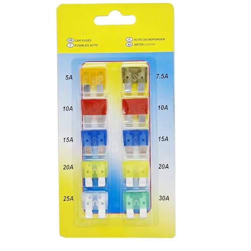 Generic - مجموعة صمامات سيارات قياسية متنوعة ، مجموعة متنوعة من الصمامات البديلة للسيارات والشاحنات والقوارب ومتعددة الاستخدامات - (عدد 10 قطع 5 / 7.5 / 2(10) / 2(15) / 2(20) / 25 / 30 امبير) من كابرمصر