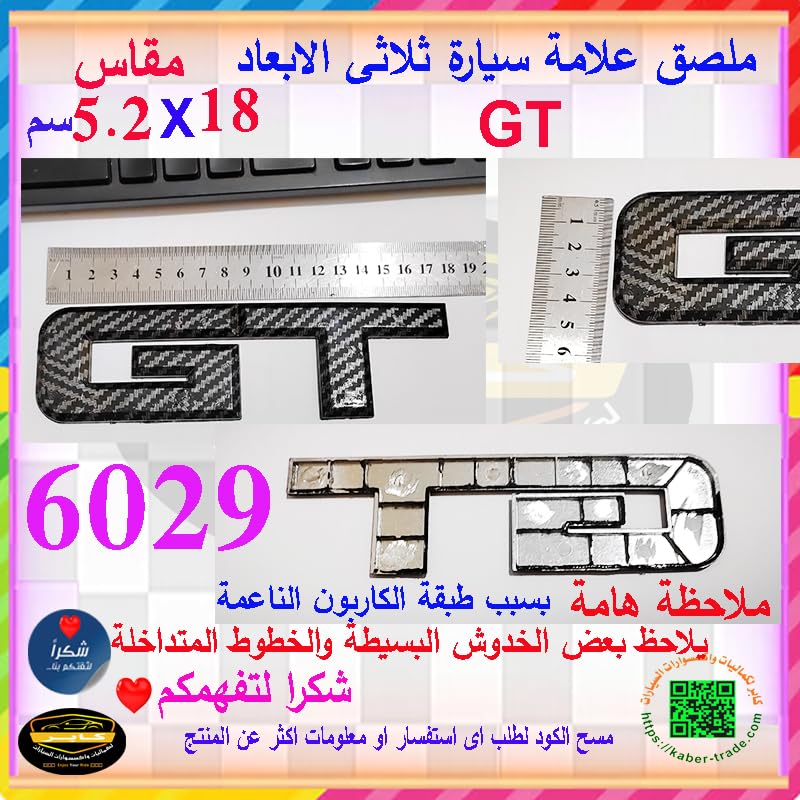 Generic - ملصقات وشارات سيارات ثلاثى الابعاد ، بديل للعلامة المفقودة والتالفة ( علامة كاربون حروف GT ، مقاس 18*5.2 سم ، كود :6029) - من كابر تريد