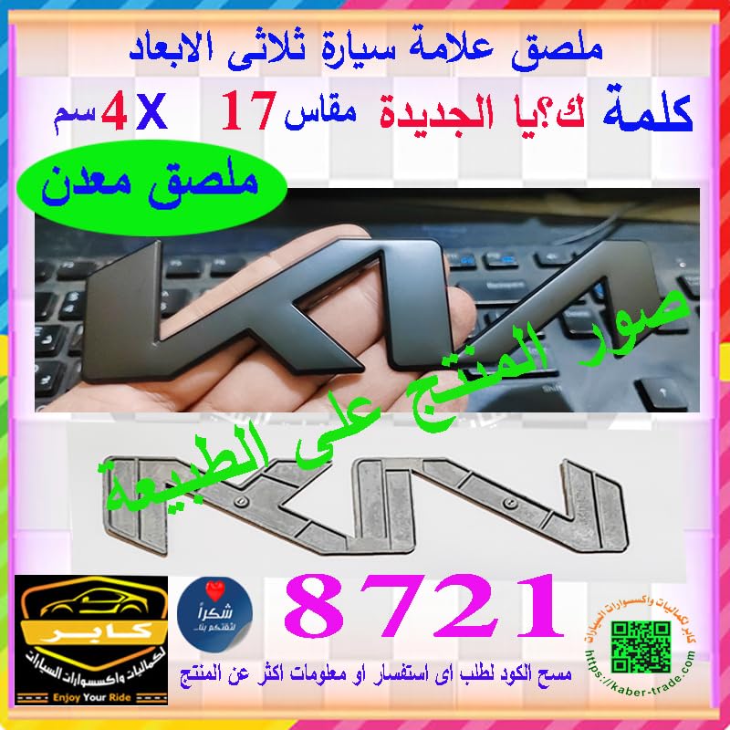 Generic - ملصقات وشعارات سيارات ثلاثى الابعاد ، بديل للعلامة المفقودة والتالفة ( علامة ك ؟ / يا ، ملصق معدن اسود جودة عالية ، مقاس 17* 4سم ، كود : 8721) - من كابر تريد