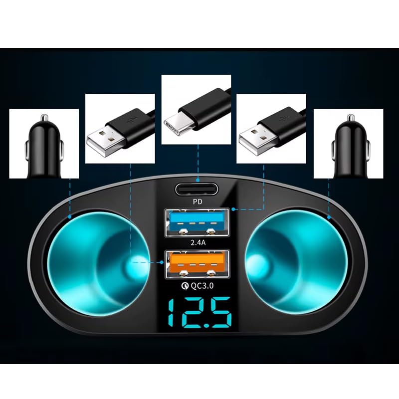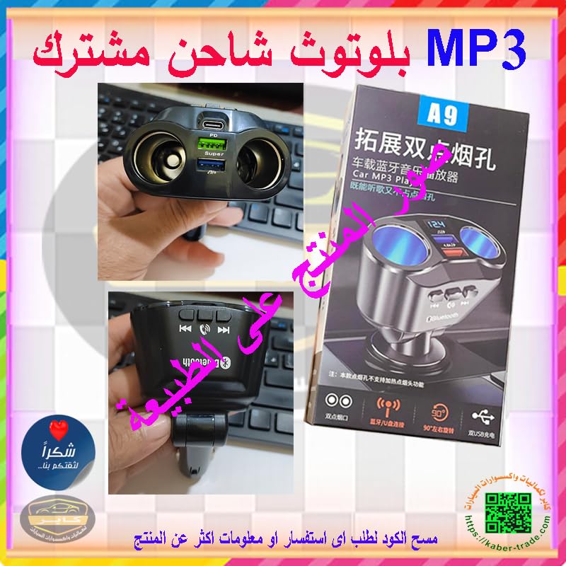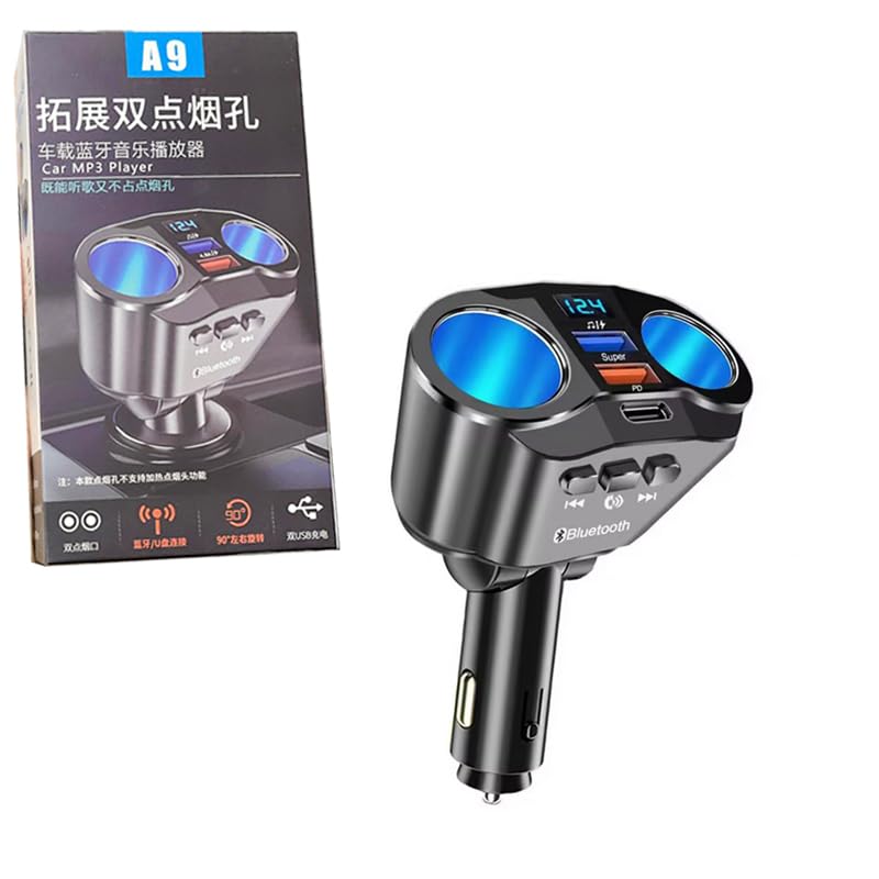 Generic - محول استقبال لاسلكي من كابر تريد، مقبس ولاعة سجائر للسيارة، شاحن سريع USB مزدوج، منافذ متعددة (الموديل: A9، الكود:8544) - كابر تريد