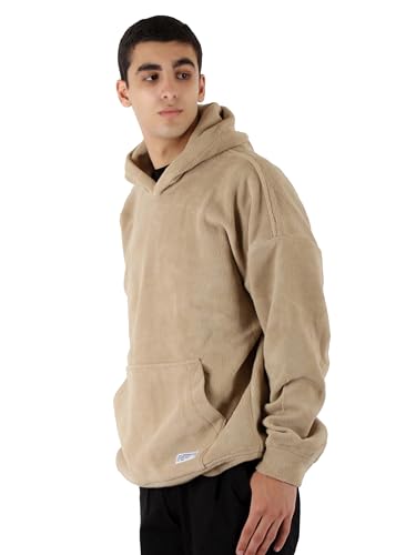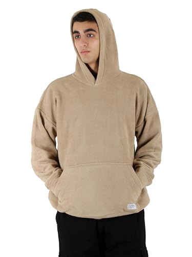 KAF Home - سويت شيرت بغطاء للرأس بمقاس كبير للبالغين من الجنسين مصنوع من الصوف القطبي من كاف هوم، لون بيج، مقاس لارج