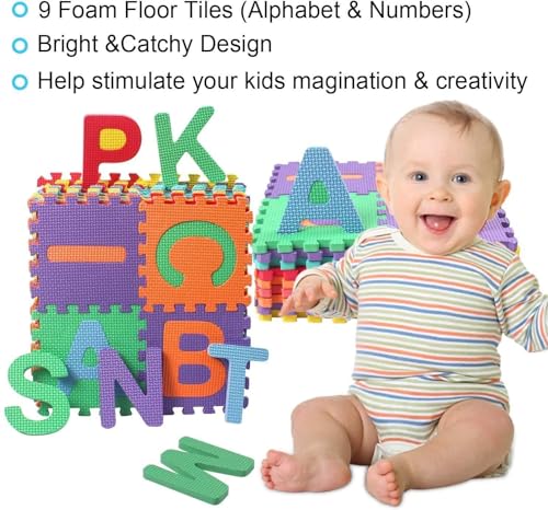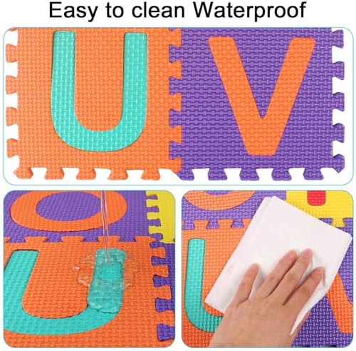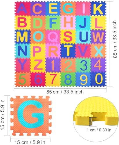 - 【مثالية للمساحات الصغيرة】36 قطعة إجمالاً، تتكون من 26 حرف أبجدي (A-Z) و10 أرقام (0-9). تسمح سجادة الأرضية هذه لأطفالك بتعلم الحروف والتعرف على الحروف الأبجدية أثناء الاستمتاع في نفس الوقت.