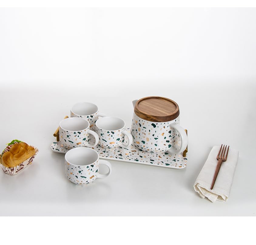 Generic - طقم شاي بالبراد من كاراجا، بورسلين، ابيض، عدد القطع: 7