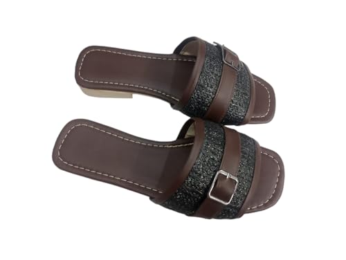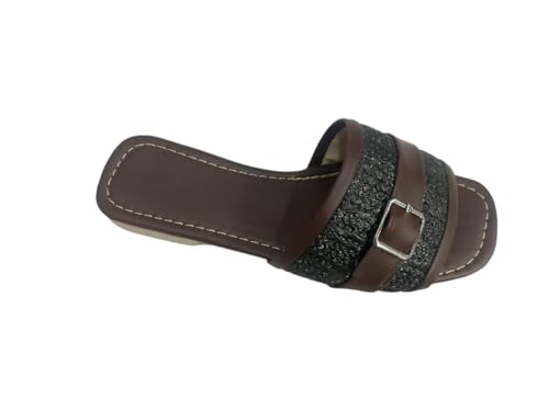 Karisma - صندل نسائي من القماش بمقدمة مربعة مسطحة، حزام بسيط مع شريط بطانة رفيع وابزيم بحزام