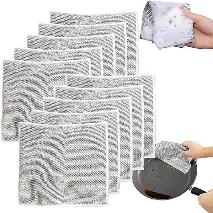 KASHIVAL - قماش غسيل الأطباق متعدد الأغراض من كاشيفال، مصنوع من الفولاذ المقاوم للصدأ للاستخدام الرطب والجاف، قماش غير قابل للخدش لغسل الأطباق والمغاسل والطاولات (عبوة من 10 قطع)