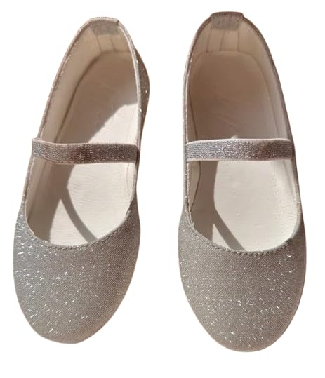 Katee - حذاء باليه مسطح لامع للبنات من كاتي، حذاء ماري جين زهري لامع (فضي، 33)