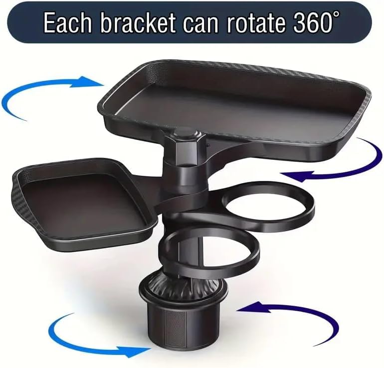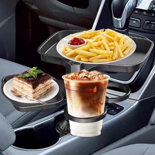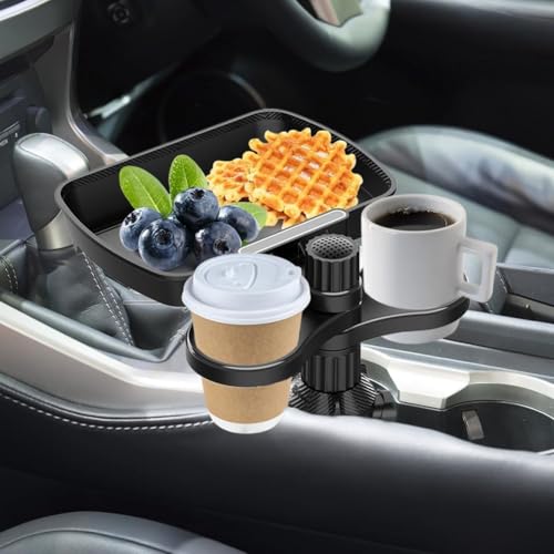 ecosystem - طاولة سيارة قابلة للتعديل بزاوية 360 درجة من كايونيد، محول حامل أكواب السيارة 2 × 1، حامل مشروبات للسيارة، 2 × صينية طاولة وصينية طعام قابلة للإزالة لحامل أكواب السيارة