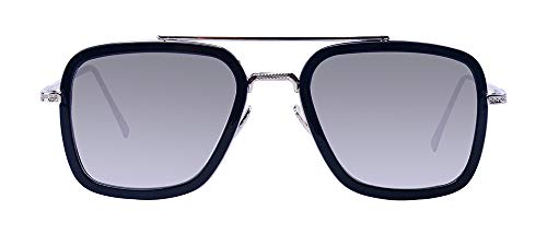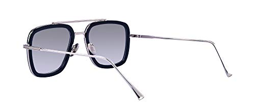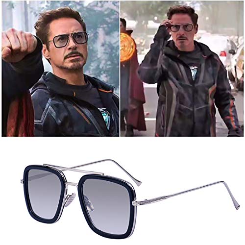 Kelens - نظارات شمس ريترو من كيلينس بشنبر معدني مربع للرجال والنساء، نظارات شمس كلاسيكية لشخصية داوني ايرون مان توني ستارك, إطار أسود/ رمادي فاتح,