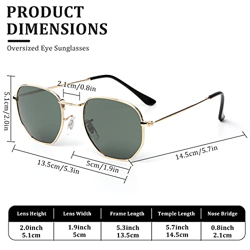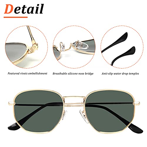 Kelens - نظارة شمس بتصميم سداسي مربع باطار معدني مضلع للنساء والرجال بعدسات مستقطبة للواقية من الاشعة فوق البنفسجية كيلينز ذهبي - أخضر G15 S