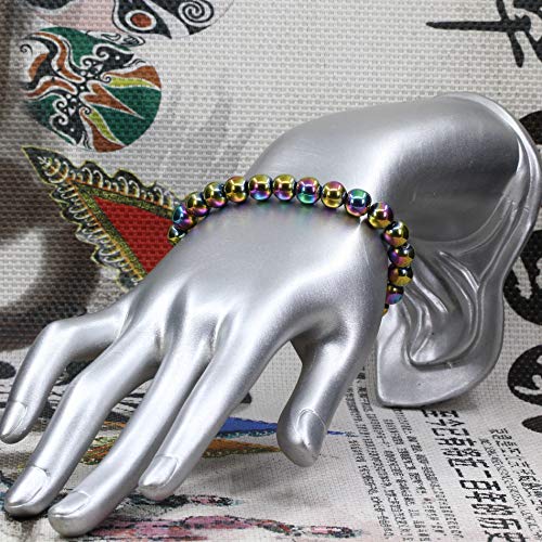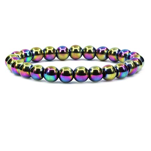 Keleny - سوار خرز باستك مزين بخرز مستدير الشكل وباحجار شبه كريمة والكوارتز الطبيعي مقاس 8 ملم ملائم للجنسين من كيليني 7 بوصة inch حجر الهيماتايت