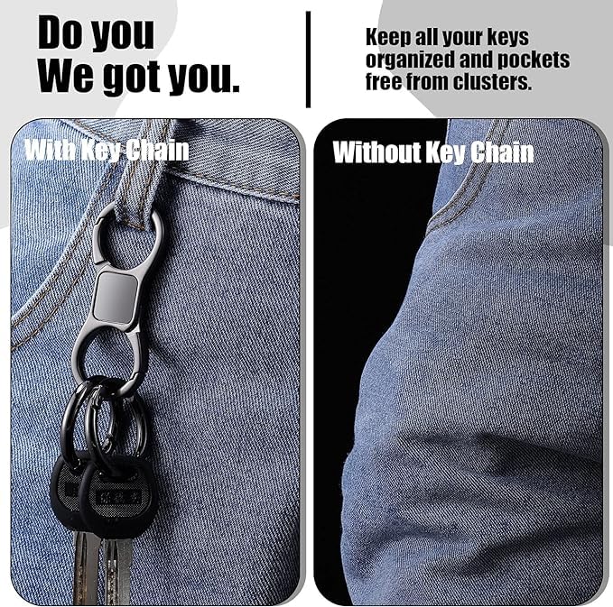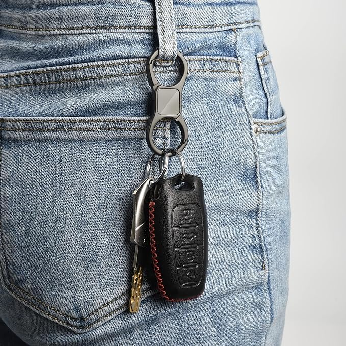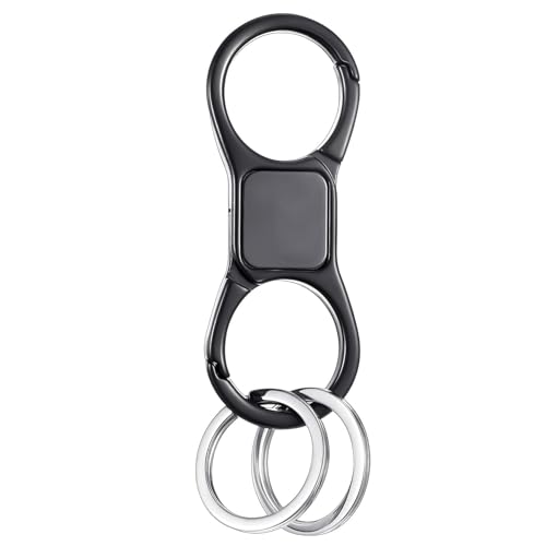 fashion mania - سلسلة مفاتيح سريعة الفك بمشبك زنبركي مع 2 حلقات شديدة التحمل للسيارة لتنظيم المفاتيح للرجال والنساء من فاشون مانيا زنك أسود