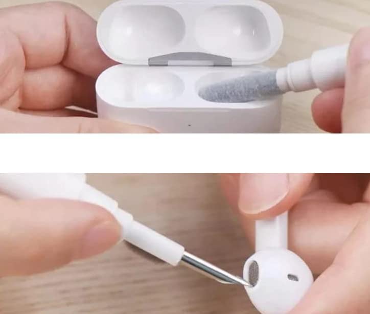 - مجموعة تنظيف متعددة الوظائف: تتميز هذه الإسفنجة المحشوة بإمكانية تنظيف الغبار المتكون في جراب علبة الشحن اللاسلكي لسماعة الأذن. فرشاة ذات كثافة عالية يمكنها تنظيف الأوساخ الموجودة على فتحة منفذ الصوت لسماعة الأذن. يمكن استخدام سن القلم المعدني لتنظيف بقع الغبار العنيدة.