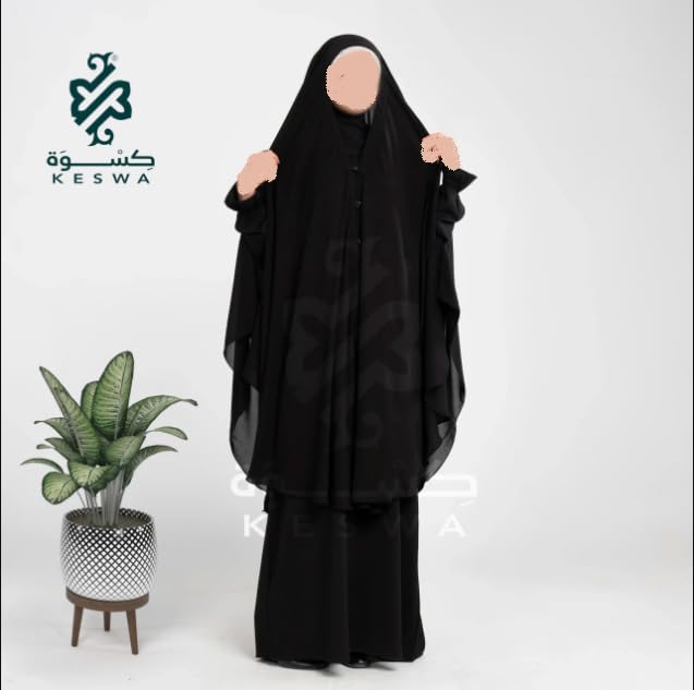 Generic - عباية حجاب من خيمار (وشة مفتوحة) بلون اسود طويل جدا - عباية حجاب | وشاح مفتوح - خمار اسود طويل كسوة حجاب