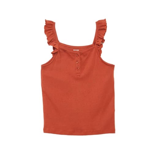 Kiabi - كيابي توب فيست بوينتيل مع اشرطة مكشكشة للبنات، موديل BTS62، برتقالي
