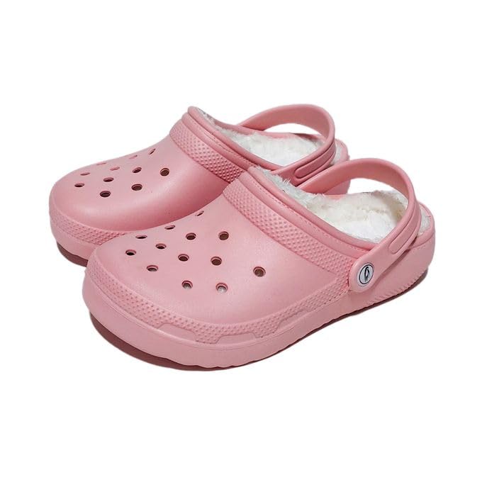Generic - صندل كلوج كلاسيكي مبطن بالفرو للاطفال بلون بينك