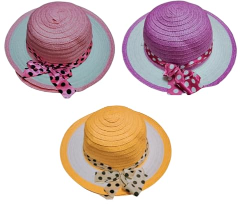 Generic - قبعة شاطئ للأطفال، مع شريط منقط، عدد 3 قطع