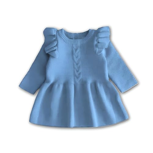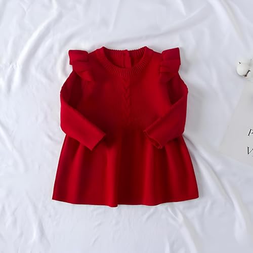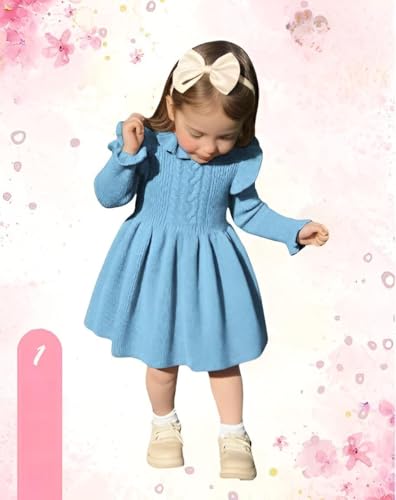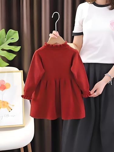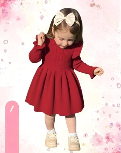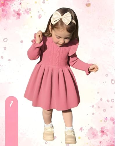 Generic - كيدز فاشن - فستان محبوك ناعم بلون ارجواني فاتح للفتيات الصغيرات باكمام مكشكشة ونمط منسوج على شكل ضفائر، يناسب مقاسات 1-4