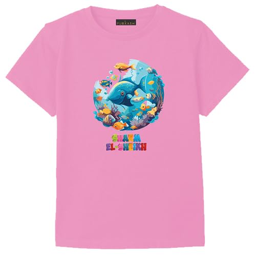 Generic - تي شيرت برسومات بنمط المحيط للاطفال، بينك، كم قصير مقاس من 3 الى 12 سنة