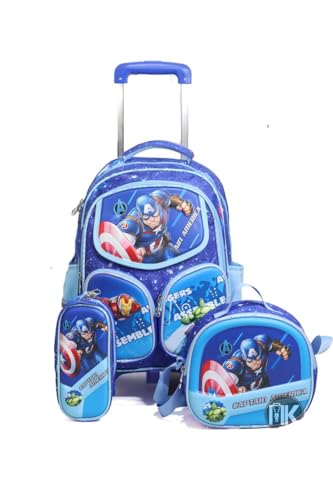 - مجموعة متكاملة: طقم مدرسي من ثلاث قطع يشمل حقيبة ترولي رئيسية وحقيبة طعام وحقيبة أقلام بتصميم