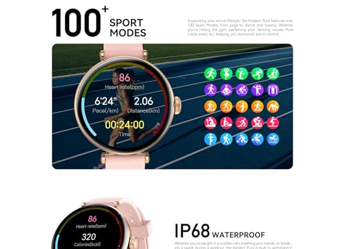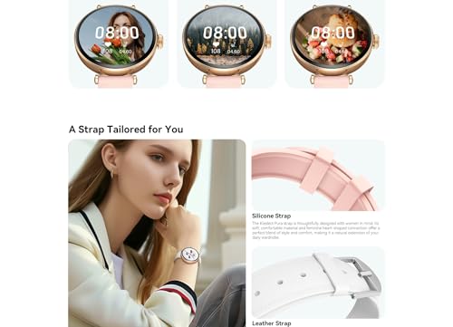 فكرة - ساعة ذكية للنساء من كيسليكت بلون ذهبي وشاشة أموليد 1.2 بوصة فائقة الوضوح فكرة سوار مزدوج.