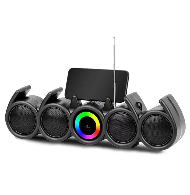 Kisonli - مكبر صوت ساوند بار LED-918 ار جي بي بصوت قوي لسطح المكتب مع حامل موبايل مدمج بمزايا تشغيل USB/TF/AUX من كيسونلي - أسود