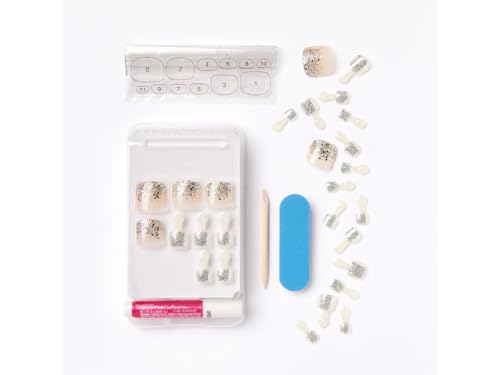 - تتكون المجموعة من 24 عروًا لاصقًا وجل صمغ بينك و24 ظفرًا لأصابع القدم