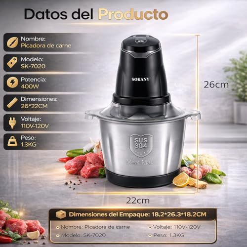 KITCHENES - محضر طعام ومفرمة لحوم وخضروات، من كيتشنز، 1000.0 واط، رمادي