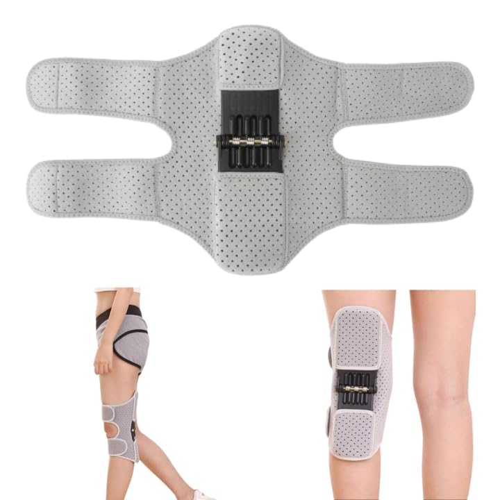 Generic - دعامة ضاغطة للركبة، دعامة واقية للركبة، معززة ومزودة بمسامات للتهوية وبنابض قوي لتثبيت مفصل الركبة، رمادي، قطعتين