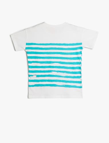 KOTON - تيشرت قطن كلاسيكي بأكمام قصيرة ورقبة دائرية مزين بطبعة سمكة للأولاد البيبي من كوتون (عبوة من قطعة واحدة)