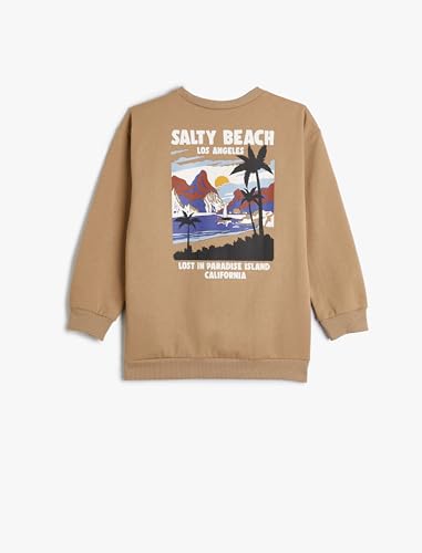 KOTON - سويت شيرت داخلي ناعم بياقة دائرية وطبعة على الظهر للأولاد من كوتون