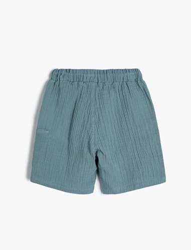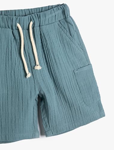 KOTON - شورت منسوج بجيوب ورباط عند الخصر للأولاد كوتون، لون أزرق 614، مقاس 9-10 سنوات