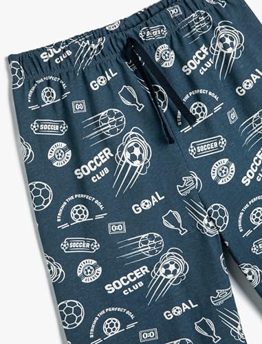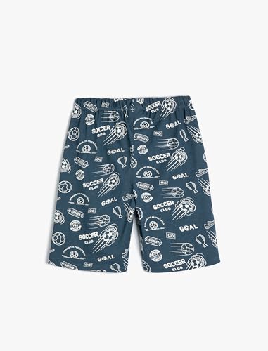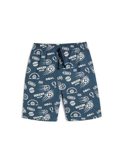 KOTON - شورت قطن بطبعة كرة قدم للأولاد بعمر 7/8 سنوات من كوتون، تصميم أزرق بحري 7D2
