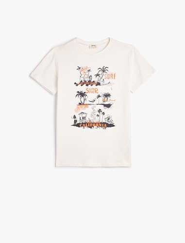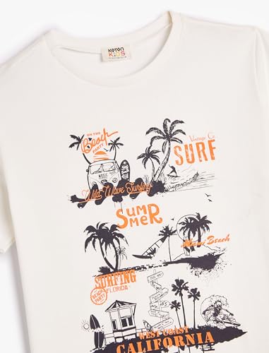 KOTON - KOTON Boys Short Sleeve Crew Neck Summer Themed Printed Detail Tshirt