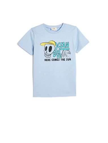 KOTON - تيشرت للأولاد من كوتون بتصميم حديث قطن بأكمام قصيرة ورقبة دائرية ضيقة مطبوع عليه جمجمة عبوة قطعة واحدة