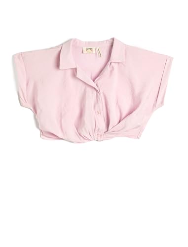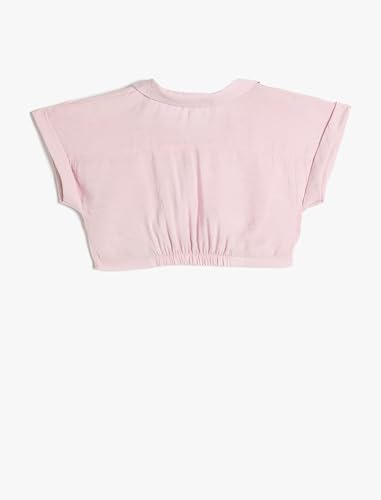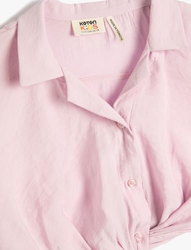KOTON - KOTON Girls Crop Short Sleeve Collar Detail Front Tie Modal Fabric Blouse